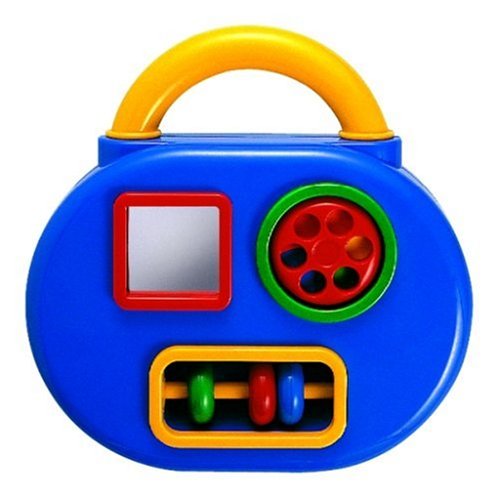 My 18-month old son has had this toy since he was 6 months old. He enjoyed looking at it and pressing the buttons when he was smaller, but really appreciates it on many levels now that he is older. He loves to remove the animal shape buttons and carry them around, to press the buttons and hear the music, to fit the buttons back where they belong, and to switch the toggle button to hear animal noises. He also likes the portability of this toy and the fun little handle. He has thrown it around a fair amount and it has held up perfectly. This is a fun toy that grows with babies to toddlers and helps teach them about shapes, animals, colors, sounds, and spacial relationships.